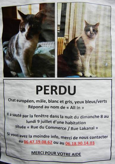 One of the first images to catch my eye and then my camera yesterday was a flyer about a lost cat. The flyer was stapled to a pole across from the Saint John the Baptist of Grenelle church, very near the popular Gosselin fruit shop. Last Sunday night, the cat jumped out of the window of a domicile near the rue du Commerce and the rue Lakanal. Now that is a number of blocks away from the church, but I think the person who posted the flyer knew that most of the neighborhood folks from rue Lakanal shop on the rue du Commerce, like the Gosselin fruit shop, and, if they attend mass, probably go to St. John the Baptist of Grennelle. It is, after all, the old center of the former village. We shall watch for this fine animal, whose name is “All in,” a “Texas Hold ‘Em” poker term. We wonder how he got that name? Do Parisians play “Texas Hold ‘Em”? If so, this is the first I’ve heard of it. Speaking of names, one of our friends unwittingly has given my husband, Tom, a new name that he rather likes. In a Facebook message the other day, she committed a typo and referred to him as “Tome.” Being a writer, Tom rather likes the nickname “Tome.” I said he could be known as the “Tome of Cooley,” which sounds a bit like the “Book of Kells.” Oh, he REALLY liked that one. The Tome of Cooley received an email yesterday from New York with samples of the design for the 8th edition of The Norton Sampler. We spent some time poring over them. The typography and design of the inside pages is improved over the current 7th edition, and the cover is a real knock-out. The Tome and I are very pleased. We were in the mood to celebrate this milestone, so I’d made a reservation at Le Cristal de Sel, on rue Mademoiselle. That’s why we took our evening stroll down to the area in front of the church, where rue Mademoiselle makes its contribution to a lop-sided-star-like intersection. Facing the same, slightly complicated intersection in front of the church, on the corner of the rue des Entrepreneurs and the rue de l’Abbe Groult, is another one of those old “village-y” buildings that now is home to a bar now called Charlie Birdy. This is our fifteenth summer in Paris! As far as I can remember, this building has had a bar in it. It purports to be a restaurant, too, but not really. Not seriously. It is a bar. On the overblown web site for this place (www.charliebirdy.com), you can read about the origin of the name, if you read French, and you can inspect the weird menu, which is in French but has a lot of English words on it. Maybe this is a good place for hamburgers and hot dogs, I don’t know. But really, it is a bar, supposedly named for Winston Churchill’s parakeet. The concept of an American cocktail lounge is appealing here. But the French don’t call it that. When it occurs someplace in a bar in Paris, it is called something else. At Charlie Birdy, it is called a “sofa bar,” which in our minds conjures up images of lap dancing or some related activity. But “cocktail lounge” isn’t descriptive enough for the French, and “sofa bar” says more about what the place looks like: a room with sofas and comfy armchairs where drinks are served and consumed. Mostly, however, people want to sit outside, on the terrasse, which in this case, we would call the sidewalk. They want to be there in part to enjoy the great outdoors, but also because that is the one place that smoking is still permissible. There is no smoking inside, even in the “sofa bar.” The great outdoors has been cool and damp so far this month, but we do not dare to complain, given what our friends back home in the U.S. have been dealing with. So, no more talk of the weather here. We decided to check out the park called Square Saint-Lambert, situated at the east end of the rue des Entrepreneurs. Normally resplendent with flowers, the climate this year has been conducive to greenery, but not blooms (oops, sorry, I slipped back into that weather topic). But at least the fountain was working again! So often, when we’ve visited this park, the fountain has been turned off, and its pool has been drained. Not now. The fountain is blasting away, and the pool is weirdly green. There were a half dozen old people gathered on a couple benches that would have been in the sun, if there was sun, doing what old people do in Paris in the hour or so before dinner (which is at 8PM or later): talking. Other than these regulars, there was almost nobody using the park. Normally, people would be stretched out on the grass here and there, and kids would be running and playing. They seem to have given up on summer. We walked around the north side of the park and back out on the street called Leon l’Hermitte because we wanted to avoid the clouds of gnats that swarm from the trees in the wooded end of this park. At last, we made it to our destination, the fine little restaurant called Le Cristal de Sel, in time for dinner (8:15PM). Last year, we discovered this place in July (thanks to suggestions from a couple friends), but were not able to dine there until after the proprietors returned from vacation in early September. It was more than worth the wait and the persistence. You can read about our experiences there in last year’s journal entries for September 2 and 15. Cristal de Sel is wonderful, and popular with the locals. We did see one walk-in get a table, but in reality you should call ahead and make a reservation. I’m not sure why they bothered, because they don’t need more business, but the restaurant has gone to the trouble to create an English menu. It was offered to us, but we declined. At one point, the server asked if we speak English. I said, “Oui. . . . mais Francais aussi,” with a little smile. He seemed to be pleased not to have to try to speak that confounded anglo-saxon tongue. Last May, the restaurant posted this on its web site: Direction le sud-ouest pour notre nouveau