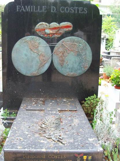 Both Darla and Lennie sent me the New York Times article about the annual picnic in white that happens in Paris once every summer. The occasion for the article is that something like this is being done in New York now, but it isn’t news here. Le Parisien reports on the picnic in white after the fact every summer. Every summer, I pretend to be miffed because we weren’t invited. Truth is, I don’t really care. All my clothes are black or close to it. I’d have nothing to wear. But it certainly is fun to read about this annual event. One year, we even stumbled upon it just as the last partiers were packing up to leave. Considering the popularity of Le Parisien, I take issue with the NYT reporter’s claim that few Parisians know about this annual picnic in white. Of course they have heard of it, even if they aren’t all invited. You can’t believe everything you read in the newspaper, even the NYT. Tom went out on his own yesterday to buy picnic-like food at the bakery and fruit vendor. We are amazed at how popular and trendy the rue du Commerce has become. It hosts throngs of shoppers every day! This is a big change from a decade ago, when this was a sleepy, mom-and-pop shopping street. The infrastructure improvements to make the street more pedestrian friendly are holding up very well, and looking good now that the plants in the green spots are maturing. The only problem occurs around 10AM when some delivery truck must block traffic on the street because there is no place for it to pull over to the side. Then the blocked drivers begin honking their horns . . . . Yesterday, we watched most of the day’s stage of the Tour de France. So many bad falls are happening this year! But there are still top riders in the race, so it continues to interest us. And, of course, the scenery is still spectacular. Last night we decided to walk down the avenue Félix Faure to Le Granite on rue Duranton for dinner. We arrived early, thinking we’d reserve a table and then walk some more and come back a little later. But the young man who was to be the sole server working that evening was so welcoming to us that we entered and took a table as early as 7:20PM. By 8PM, the restaurant was filling up. The entire menu in this place is written by hand on chalkboards, in that kind of handwriting that is so foreign to English speakers. But we’re used to it now, and the only thing on the extensive menu that stumped me was “tarama.” I asked the server, and he said it was fish eggs, so I decided to wait until I know more. According to this web site, “Tarama (tah-RAH-mah) is a popular no-cook / no-bake Bulgarian appetizer made with fish roe, olive oil and lemon juice. This affordable appetizer (because it's made with carp or cod roe instead of the pricey sturgeon) is usually served with toasted bread and garnished with cured black olives, parsley or celery leaves and a drizzle of olive oil. It is similar to Greek taramosalata.” Poor man’s caviar. I’ll try it next time. Instead, we shared a home-made terrine, and I had the duck breast in a honey-based berry sauce with a side dish of buttery, puréed potatoes that I also shared with Tom, while Tom had rack of lamb with a side of ratatouille. The wine list was by the bottle only, but when I asked, our amicable server explained that any of the wines can be ordered by the glass, small pitcher (25 cl) or larger pitcher (50cl) as well, and the price would be structured accordingly. In other words, a 25 cl pitcher costs one third of what the 75 cl bottle costs. How nice! The food was very good. Everyone in the restaurant was French, except for us and a family of four. The father of the family, however, spoke excellent French. The family appeared to live in France, not to be visiting. The children were very calm and quiet in the restaurant, as French children tend to be, and American children tend not to be. The server never tried to speak English with us, and he was friendly and nice. He apologized for the long wait for our main courses. Maybe someone had to go out to catch the duck. The woman whom we remember as the proprietor was there, but she was having to work back in the kitchen last night whereas normally she is running the front of the house. I heard our server tell a regular customer that he was filling in at this restaurant, although he really works at another one, which happened to be closed that evening. Thankfully, the proprietor had him to call upon. Not many servers can handle an entire restaurant of tables the way he did. It rained a little bit on our walk back, but it was still fairly warm. But today the weather is downright cool and rainy. After being in that drought in Florida, this feels very good to us. The other day when we were visiting the cemetery at Passy, I was taken by the interesting tombstone for Dieudonné Costes. I was also taken by his first name, which means “God-given.” He was a famous, early aviator, known for breaking records and flying long distances. In World War I, he was famous for his fighter ace skills. Born in 1892 in the provinces, he served in the French air force in fighter squadrons on the Balkan front, where he had six confirmed victories. After the war, he started flying commercially, starting with mail routes. Then he began his daring attempts to break long-distance records in the 1920s, flying a plane called the Breguet 19. He broke the world distance record by flying from Paris to Iran in 1926. In the next two years, he flew around the world with another pilot, Joseph le Brix. Costes and a pilot named Bellonte tried to cross the North Atlantic in 1929, but they had to turn back because of bad weather. He and a pilot named Codos broke the world’s distance record in 1928, flying a circular route of 8,020 kilometers. Then at last, in September 1930, with Bellonte again, Costes flew the more difficult westbound direction across the Atlantic, from Paris to New York – the first airplane to do so. It w
