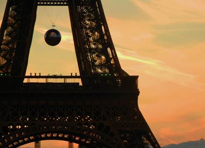 4-ton “disco ball” hanging in the Eiffel Tower, at the northwest end of the