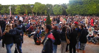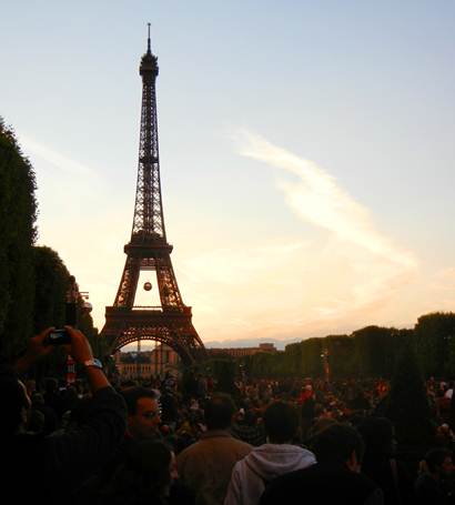 A few days ago, I wrote to a friend, “As Quatorze Juillet approaches, I often think about that ‘solidarity’ concept that is celebrated here, along with ‘liberty,’ ‘brotherhood,’ and ‘equality.’ Bastille Day is not nearly as commercial here as July 4th is back home. Here, it does seem to be more of a day for reflection about the meaning of liberty, which must go right along with solidarity, brotherhood, and equality. And then there are fireworks at the end of the day.” The fireworks show was phenomenally good. Take a look for yourself. The entire 40-minute show is available at www.14juillet.paris.fr/feu.html. Each year, the PR people who work for the city of Paris come up with a “theme” for the show. The show is not heavily commercialized, and no company gets to put its name all over it because they provide funding for it. But the PR people still go to work on the “theme.” This year, it was “disco.” A 4-ton “disco ball” was hung in the middle of the Eiffel Tower structure. That’s how serious they are about this “theme.” After the show, the Champ de Mars was to become one big dance floor. I thought that we would probably hear the music all the way back at the apartment, but we did not. We watch the show from the apartment – specifically, we stand, fully clothed, in the bathtub, draw the shower curtain aside, and open the French window. We see the upper part of the fireworks, over a quintessential Paris rooftop scene, with the top of the Eiffel Tower included. It isn’t bad at all, and we have it all to ourselves. Way in the past, we have made ourselves part of the enormous crowd on the Champ de Mars. But now we watch from home. I never have liked crowds, and Tom isn’t fond of them either. But 9/11 underscored my dislike for crowds. We do feel the excitement of the approaching event, however, and so we like to go out and see the people flowing into the Champ de Mars, hours before the 11PM fireworks show begins. First, I took Tom by the Franprix grocery store that I discovered on the rue Lourmel. I’d gone out at 2:30PM in search of bread and paper products that afternoon, and of course the nearby bakeries were not open. As I continued west on the rue du Theatre, I saw a woman approaching me. She was clutching a baguette! And a loaf of country bread! I thought I vaguely remembered a bakery farther down Theatre, so I continued. But I was wrong. No bakery there. She must have come from the rue Lourmel, I thought, and I had noticed a Franprix sign when I passed that street minutes earlier. A good and hip grocery store in Paris will carry some real bread, from a real bakery. And all grocery stores have household paper products. So I went back to rue Lourmel, and entered the Franprix. It was bright, clean, new, uncrowded, well-managed, and it had wide aisles. The bakery bread was there, although most of it had been sold. I managed to get the last full-length baguette without sesame seeds on it. The baguette was made with unbleached flour, in an old-fashioned style with pointed ends, so I also bought a half-size white flour baguette for Tom. He is a white-bread kind of guy. This Franprix had a big assortment of paper products. The entire store was well-stocked. It was like the Monoprix, but without a hundred frenzied shoppers in it. The Franprix was calm, even serene. In the evening, when I was taking Tom down Theatre to show him my discovery, of course the bakery near us on Theatre was then open. I will never fully understand the hours that businesses here are open. Just when I think I have it figured out, I find out that I have no idea at all. I thought that the retail stores on the rue du Commerce would be closed for the national holiday. They were not. Practically every clothing, shoe, DVD, and watch shop was open. The cheese shop and the butcher were not. But the butcher shop on Theatre was open. Yet the kitchen supply store was not. It just makes no sense. But on the whole, there seemed to be more businesses open on this Bastille Day than any other Bastille Day that I can recall. The French restaurants were mostly closed, except for about half of the brasseries, and a few choice places like La Gauloise. After Tom toured the Franprix, he wanted to go up to the Champ de Mars to see the mob starting to gather. I was game, so north we went, up the rue Lourmel, which ends at the boulevard de Grenelle, where we crossed underneath the elevated train tracks of the metro line 6. The market awnings were mostly already set up under the tracks for the Sunday open-air market. As we walked up the short rue Humblot, toward the Place Dupleix, I spotted an Indian restaurant with a banner announcing new ownership. We crossed the street to check it out. It was 8PM, after all. Time for dinner. The windows were spotless. Check. The floor looked clean. Check. The menu included lamb Korma. Check. The décor was interesting and appealing. Check. There were plenty of people dining there, and they did not look like fools. They looked savvy. Check. There were still a very few tables available. Check. We entered, said good evening to the boss, and were given the best table remaining, which was near the door. The boss and the server were nice. Check. The dining room was warming up fast. That felt good; I’d been cold for days. We were glad to be near the open door, so we didn’t become uncomfortably hot. The boss was fiddling with the remote control for what might actually be an air conditioner! We ordered a samosa to share, a garlic nan to share, lamb curry for Tom, lamb Korma for me, and a big bottle of San Pellegrino sparkling water. The restaurant completely filled up while we dined. The service was very nice, and the food looked good. But in reality, it was bland. The prices were very reasonable, and significantly less than at Banani, our favorite Indian resto in Paris. I guess you get what you pay for. But I am not complaining. This Royal Rajasthan restaurant at 8 