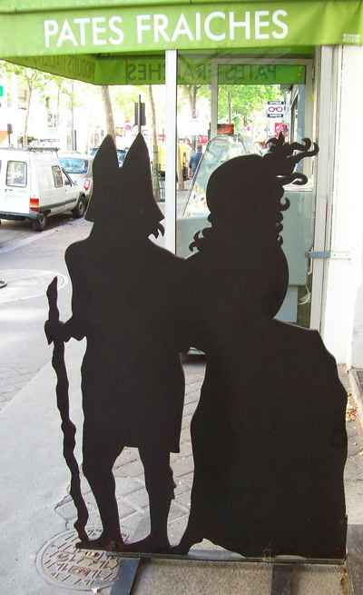 On that subject of how to get the server to bring you the check in a French restaurant, Lennie commented that even when you ask for the check, the server may still think that you want to sit and chat for a while, because you are sitting and chatting. I think this is often true. That must be why those nonverbal cues such as getting up to go to the restroom and gathering up your things or putting on your jackets seem to work. Cynthia sent a cool link to information about all those statues in the Luxembourg gardens. I’ve seen this info in a booklet in the Senat’s bookshop, but it is nice to have it available on the web now. I think I gave my booklet away. Tuesday was one very rainy day. We stayed in, reading and writing, then watching the Tour, until evening when the rain stopped and we walked around in the neighborhood again. At 7:30PM, we peeked in the door at Cristal de Sel on rue Mademoiselle – a restaurant that has been recommended to us. The staff was eating dinner, so we started to go on, thinking we’d just stop by again at 8 to see about dinner. But I decided to go back and put their phone number (posted on the menu outside) into our cell phone. Then I went ahead and called for a reservation. The gentleman who answered nicely told me that the restaurant was already booked up for the evening. That is a good sign. We are definitely going to dine there sometime soon. We walked over to the brasserie called Le Bistro du Quinzieme (behind the church at the end of rue du Commerce) because we’d noticed that this year, it looks appealing, whereas it hasn’t looked so good to us in the past. Somebody bought it and spiffed it up, I guess. The link above has a couple recent reviews (in French). Sleuthing on the web tells me that this bistro was taken over or started by a 38-year old woman named Linda Lopez in February 2010. She could well have been our server; tall and thin and casually fashionable, she looked like a former model. We liked the looks of the menu and the few people who were already there. The windows were clean, and the place looks like somebody cares. So we entered and were graciously given a nice table by the window. I ordered the lamb shank with couscous – similar to what I’d eaten at Le Terminus Balard, but without the apricot and with a dark, rich reduction sauce. I adore that kind of sauce. It was an appropriate dish for a cool, rainy day. Tom had a small steak (filet de l’entrecote, which is offered in two sizes at two price levels) and sautéed potatoes. Everything was delicious and attractively presented. Service was smiling and attentive. Prices were very reasonable. Tom’s steak was every bit as good as the steak at Le Tipaza, maybe better. “Just like an American steak,” Tom pronounced. We’ll be back. Don’t worry – we did eat our vegetables. In the afternoon, I had roasted a mélange of vegetables. Included were tomatoes. I’ve noticed all the roasted tomatoes being served to us, and I noticed that the tomatoes here have a thicker skin than American tomatoes do. That makes them easier to peel with a vegetable peeler. Peeled, roasted tomatoes are much better than unpeeled ones, but I’m not sure why. Maybe a chef like Christian Vivet could tell me why. So into the ceramic baking dish I put two peeled, cored tomatoes with pesto inside, a cut-up potato, some peeled carrot pieces, a quartered onion, drizzled olive oil, freshly ground pepper and some more pesto. All was covered lightly with foil instead of a tight-fitting lid. After roasting for an hour and a half (!) the mélange was ready to eat, just in time for the last 20 kilometers of the day’s stage of the Tour. The veggies were like an early starter course for dinner. I recently finished the best seller, The Paris Wife, by Paula McLain – an excellent book that I highly recommend. It is written from the point of view of Hemingway’s first wife, Hadley Richardson. So now I must read Hemingway’s A Moveable Feast. No problem. This apartment has 10,000 books in it, a least (no exaggeration), and Tom found the requested book in short order, right there in the living room. It is a great life. Sign
