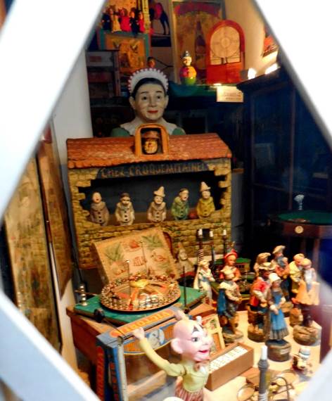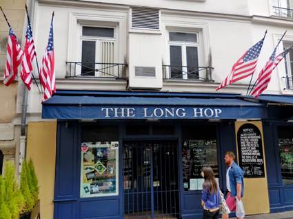 Love. What does it mean to love? I believe love is positive, constructive, protective, caring, nurturing. “Love” that does not have those qualities is probably not love, but rather something else that can be confused with love. “How do you show your mom that you love her?” Pastor Danner once asked the children during the kids’ moment on a Sunday not too long ago at church on Sanibel. “Do you show her you love her by cleaning up your room?” Yes, that is one of the ways you can show your love, if you’re a kid. If you’re an adult, you can show your love by NOT putting a love lock on anything in a public space. So-called “love” locks are destructive and ugly. They’re a poor way of showing your love to your loved one, and a self-defeating way of showing your love for Paris. People by the hundreds of thousands have been putting padlocks on Paris bridges (and other infrastructure) to demonstrate their love for their significant others. Attaching those locks is a selfish and bad idea. The sheer weight of the locks is undermining the bridges’ railings. On the Passerelle des Arts, entire sections of the railings have had to be removed. They’ve been replaced by temporary panels that are solid, blocking the view but not providing places for more locks to be attached. The locks are ugly. What can I say? Why would anyone want to make Paris ugly, just for their own foolish superstitious beliefs? People, please, I beg you: STOP putting love locks in public places! If you insist on a love lock, put it somewhere in your home. The rest of us don’t want to see it, and we don’t want it to be damaging our infrastructure. We’d started our Sunday walk by taking the metro to Maubert-Mutualité, in the 5th arrondissement, where we walked up the rue Maitre-Albert toward the Seine and Notre Dame. I noted the spot on Place Maubert where many Protestants were burned to death hundreds of years ago. I just can’t get that historical fact out of my head; every time I pass by there, I think about it. Across from that spot, the sidewalk is several steps lower than the street. We stepped down there to take a look at one of those ubiquitous pubs for English-speakers. This one was not British or Irish however; it had half a dozen American flags flying on its façade. The name of the place was “The Long Hop,” and it had a sign on the façade urging its patrons to be quiet, for the sake of the neighborhood. I’ve seen those signs on many Parisian bars, in French, but this is the first one I’ve seen on an English-speakers’ pub. I applaud the owners for showing that they love their neighbors. A little farther up the street, we paused to look into a shop window at a display of whimsical creatures (below).