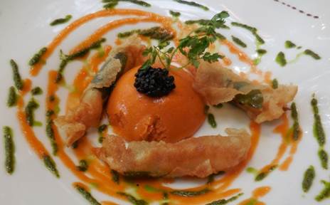 The starter course, croustillants de langoustines, was small in size but rich in flavor. In addition to the three croustillants, there was a nice scoop of lobster mousse, topped by some caviar. Delicious!