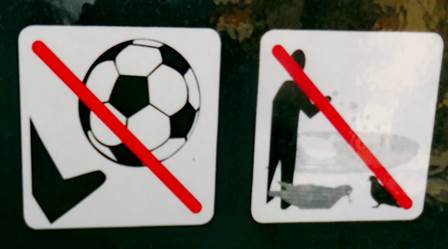 These next two signs I’ve never seen anywhere else: no soccer games, and no feeding of pigeons.