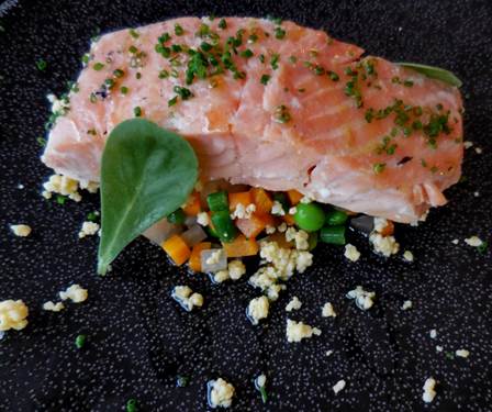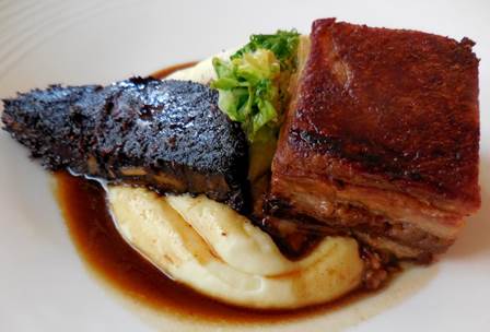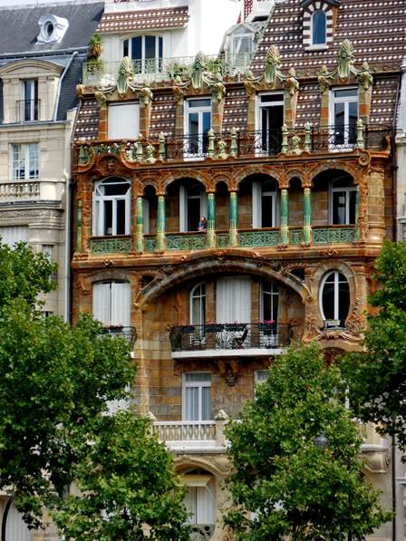 This “no alcohol” sign is one that represents a rule that is violated with impunity in parks throughout the city. Square Dupleix was established in 1921, and named for Joseph-François Dupleix (1697-1763). His father had been a wealthy farmer, who wanted his son to be a merchant. Joseph-François, however, was interested in science, not business. Cleverly, the father sent the son to India on one of the French East India Company’s ships. That spiked Joseph-François’ taste for travel, and he subsequently made several trips to the Americas as well as India. In 1720, he was named an administrator of the Compagnie des Indes (The Indies Company), and he was appointed to the superior council at Pondichery. The father was right; Joseph-François developed an aptitude for business. He rapidly made a fortune by “developing a policy of conquest” in India, according to an expository plaque in the park. I think that means he took advantage of his power and position in order to get rich. His wealth depended on implementation of his public policies. But he also had talent as an administrator. After he was made superintendent of French affairs in Chandernagore, the “town prospered under his administration and grew into great importance,” according to Wikipedia. He married Jeanne Albert, a widow of one of the French East India Company’s councilors. She was helpful to her new husband’s business because of her ties with the local leaders. In 1742, Joseph-François Dupleix became governor general of all of French interests in India. His ambition grew, and he “adopted a style of oriental splendor in his dress and surroundings,” according to Wikipedia. His ambitions worked well for him until they didn’t. In 1754, the French wanted peace with the British, and had to send a special commissioner to India to stop Dupleix. He was forced to return to France, in financial ruin because he had to leave India, and his assets, behind. He died poor, in 1763. His wife preceded him in death, in 1756. They must have missed India terribly. At least Parisians named a little park after him (as well as a street and a metro station). In addition, the French navy has had four ships named for him, including one that is still in commission. The sign in the park points out the obvious: “A double curtain of chestnut trees shade the allée of this French square, equipped with a bandstand where concerts are held from May to September.” The square includes a colorful playground for small children, and of course the entire square is fenced in with wrought iron. After passing through the Square Dupleix, we crossed the Champ de Mars and the avenue de la Bourdonnais (named for a man with whom Dupleix had numerous conflicts and rivalries), we entered the garden of the Musée du Quai Branly. The garden was much more alive with people than the last time we were there. Guards were still posted at the two entrances to the garden. I opened my handbag for the guard to check it, smiled, and said “bonjour.” We sat for a while on smooth granite benches under a trellis made of re-bar and wild roses. We strolled on around the garden, and then started our walk back to the apartment, to watch the Tour de France in the Alps. On the way, we stopped in Vin et Marée. The restaurant had neglected to give us our Lafourchette.com discount last week. I wasn’t going to complain, but I did answer the survey question honestly, when asked if the discount had been applied. I was amazed at the thorough follow-up by Lafourchette.com! I didn’t expect the three emails I received from Sharita, which resulted in the director of the restaurant calling me and leaving me a message. As long as all that follow through had happened, I decided I had to follow through as well. The restaurant director paid me 21 euros in cash, and admonished me to check the tab next time before leaving the restaurant. I stopped myself from telling him that this should not be necessary; Lafourchette.com says the discounts should be applied automatically. I smiled, we said goodbye, and were on our way. The director had to save face, we decided, so we let him get away with being rude, without any snide retorts from us. In the evening, we had a long walk to dinner at Le Beurre Noisette, on the rue Vasco da Gama. It was lovely. The restaurant filled up with locals, entirely. This location is far away from any tourist attraction, I’m happy to say. Our starter course was a shared “marbré” or terrine made from foie gras, chicken, and duck. With it was a fig confiture. That starter course would have been too much for one person. Tom had salmon for his main course, and I ordered pork belly (pictured below) – a small square of delicious pork served with boudin noir – blood sausage – as well as puréed potatoes and a bit of grilled romaine. The blood sausage was wonderful; Tom even had some of it, and he usually won’t touch the stuff.