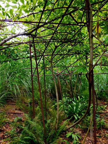 verdant place to rest on granite benches, in the garden of the Musée du Quai Branly.