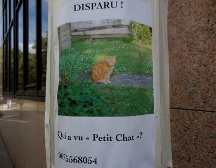 cat posters were posted all around the Square Dupleix neighborhood.  I sure hope “Petit Chat” is found!
