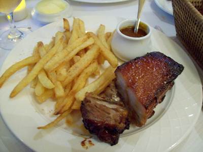 Travers de porc and homemade barbeque sauce & fries at La Gitane restaurant,