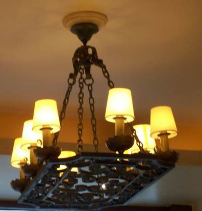 light fixture, which appears to be originally gas but rewired for electric,