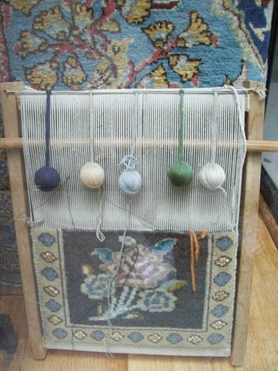 a tiny loom, to demonstrate how oriental rugs are hand notted.