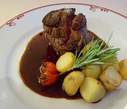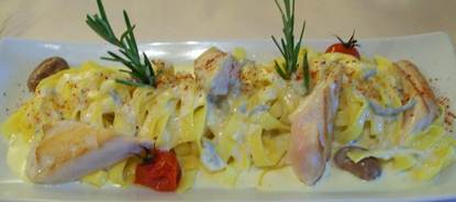 L’ Épopée’s rabbit: Filet de Lapin, tagiatelles fraiches au Gorgonzola. Below, the filet