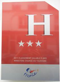 France has some new stars. The French changed their hotel classification system last year, but the new plaques were not installed on hotel façades until Monday, July 23. The old system had a maximum of 4 stars, and the new one has a maximum rating of 5 stars. (Note that this system has nothing to do with the star-rating system used by travel experts like Michelin.) It isn’t that easy to find clear information about the new classification system. So I looked around for you. (We don’t know much about individual hotels in Paris, because we stay in an apartment. Three that we do recommend are the Hotel des Grandes Ecoles, Hotel Chopin, and Hotel de l’Avre. At the last one, be sure to ask for a room facing the garden.) The best English language explanation I found was on a site called rendezvousenfrance.com. Here’s their delineation of the classes: 1
