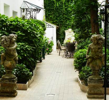 courtyard stretches all along the façade of the Hotel de Varenne. Abundantly surrounded by arbors and