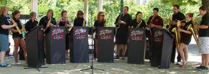 Sunday is Seine Day, and a brilliant Seine Day it was. Paris was a happening place. We began our walk by going through the Champ de Mars. As soon as we arrived there, we could hear saxophones playing Henry Mancini’s “Pink Panther.” Naturally, we gravitated to the sound. It was being made by a group called Hot House, from a British school. Twelve young people and their music teacher entertained us for several minutes, playing jazz and classical tunes. Then it was time for a gospel choir to perform. It was going to take them a while to set up, so we went on toward the left bank of the river. But first, Tom was hungry. We decided to have lunch at the outdoor café of the Quai Branly Museum, remembering some lovely lunches we’ve consumed there in the past. We did have to wait for a table in the shade, one that we