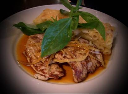 Below is the veal scaloppini al limoni, with its delightful candied strips of lemon