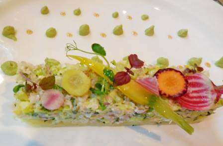 Blessed with another beautiful summer day, we decided to walk along the Petite Ceinture, at least as far as the old Vaugirard train station, and then to find a park that we haven’t seen before: the Jardin de l’Hopital Vaugirard. The Petite Ceinture is a former railway that has been turned into a greenway – a place for pedestrians to stroll, away from the automobile traffic and the hot pavement. The railway encircled the entire city, but is being turned into pedestrian park space piece by piece, neighborhood by neighborhood. “Our” section of the Petite Ceinture in the 15th arrondissement nearly connects the Parc André Citroën on the west and the Parc Georges Brassens on the east. It parallels the 15th arrondissement’s southern border. I’ve written about it in recent year’s Paris Journals, so today I’m just reporting that the Petite Ceinture in the 15th is still there, and it is doing well. As native plants continue to grow, the greenway is looking good, in a wild sort of way. One of the reasons I was particularly interested in walking there yesterday was to satisfy my curiosity about the latest Paris controversy: the Triangle. Have you heard of it? The Triangle is a modern skyscraper planned for this southerly part of the 15th arrondissement. It will be all glass, concrete, and steel, shaped like a tall triangle in wafer form. The Triangle will be oriented in a line that goes due north-south, so that it will minimize the shadow it casts on residential buildings to the north of it. The site is smack in the middle of the large Parc des Expositions convention complex that stretches between the boulevard Victor and the Peripherique, from the rue Desnouettes to the rue Olivier de Serres. Within the Parc des Expositions, the site of the Triangle, as far as I can tell, is basically next to where the avenue du E Martel is now located (at the Porte de Versailles). At nearly 600 feet tall (42 stories), the Triangle will loom over everything around it (click here to see images). But bear in mind, this is not an area with tiny, quaint little French buildings. We walked past lots of buildings built in the early part of the 20th Century that were 8 to 10 stories high. Some built in the mid-20th Century are even taller. Still, I’d have to say that the Triangle will not be in rhythm and harmony with its surroundings. It will be, as they say in architectural circles, a “cathedral building.” It will stand out – enormously. This will be the only enormously tall building constructed in Paris since the Montparnasse Tower in 1973. Parisians are still smarting over that spear plunged into the city’s heart. The Triangle is being designed to be energy efficient, and will supposedly produce four times less CO2 than a regular building of the same size. The architecture firm hired for the job is Herzog & de Meuron, the same Swiss agency that designed the “birds nest” Olympic stadium in Beijing. The Triangle is being constructed mainly for office space – something that Paris has in excess. There are also plans for a swimming pool, gardens, luxury boutiques, and a luxury hotel. But there are no plans for housing, which is something that Paris needs. A city-wide height restriction of 37 meters was imposed in the 70s, in the aftermath of the Tour Montparnasse (210 meters), but exceptions were made for areas like this, on the outer edges of the city. The intention of those exceptions, as I understood it, was to provide for more subsidized housing. (Even on Sanibel Island, we exempt below-market-rate housing from density restrictions.) Tom and I think it will take years to build the Triangle. Construction started in 2014. We turned away from the Petite Ceinture at the old Vaugirard train station, leaving the site of the Triangle behind us. As we began our short trek up the rue de Vaugirard, we detoured a bit on the rue Lacretelle to see the handsome façade of the old Hôpital Vaugirard, which is now the site of the University of Paris II’s Physical Education school. Returning to the rue de Vaugirard, we continued alongside the old hospital wall to the place where it finally stopped – at the gateway to the Jardin de l’Hopital de Vaugirard. The French Wikipedia says that “in the 17th Century, this terrain was occupied by the gardens of country homes along the rue de Vaugirard. The most important of these gardens was that of the lieutenant general of the police, Nicolas de La Reynie, created by André Le Nôtre. The land later belonged to a former college of the Jesuits.” In 1994, the Jardin was established as a nice, shady neighborhood park on a steep slope, leading from the rue de Vaugirard to the rue Vaugelas. We left the Jardin de l’Hopital de Vaugirard to walk over to another fine neighborhood park, the Square Desnouettes Clos Feuquières. This park is on the grounds of the property once owned by the Marquis de Feuquières. The simple walk home up the rue de la Croix Nivert, with a diversion on the rue des Frères Morane, was far shorter than the walk down to and along the Petite Ceinture. We were ready for a rest when we reached the rue du Theatre, but decided to forge on to the discount grocery, because we needed a few things. Finally, the pantry was stocked and we had a little time for rest and reading before dinner at Le Pario. At Le Pario, we know we will never be given too much food. Tom doesn’t need to sneak a ZipLoc bag into and out of that resto. Servings are small, and artfully arranged. We started with a mis en bouche of soothing, cool white bean soup. A small dish of butter arrived when the bread basket came. This, we decided, must be the Brazilian side of Le Pario; Parisian restos usually do not provide butter for the bread (unless you ask for it). Then came a shared starter course of crabmeat and veggies. It was pretty, fresh, and light.