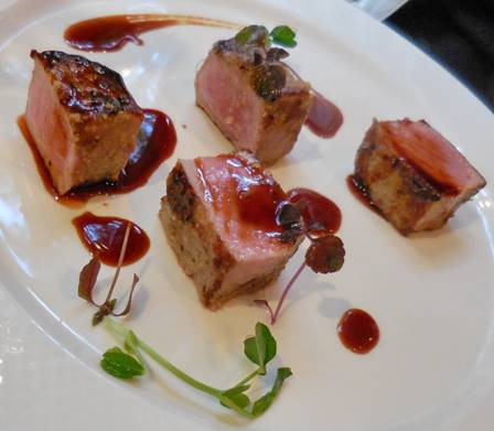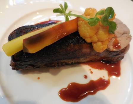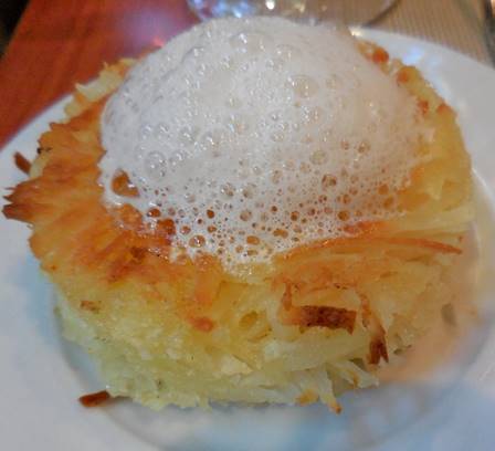 I decided to have the pressé de viande du soleil again (beef brisket with a tiny slice of foie gras and a few veggies). It came with a side of shredded potato-and-coconut cake with a frothy coconut sauce. Yumm.