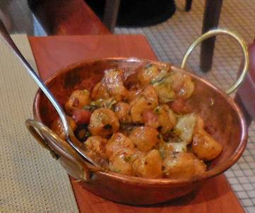 Tom had four chunks of veal chop, and a little dish of tiny round potatoes.