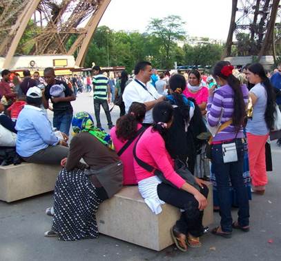 running into these musicians from south or central America near the Eiffel