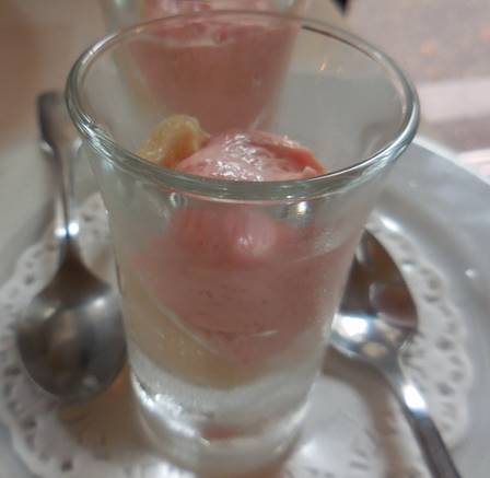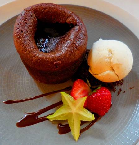 We shared a mi-cuit au chocolat, which I think is no different from a moelleaux au chocolat. Anyway, in this case it was called a mi-cuit, which means literally “half baked.” In this case, half-baked is a good thing. The molten, dark chocolate center of this concoction was sumptuous.
