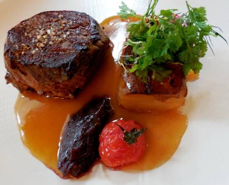 My main course was roasted duck breast, and Tom’s was a steak. Both were cooked perfectly; very satisfying.