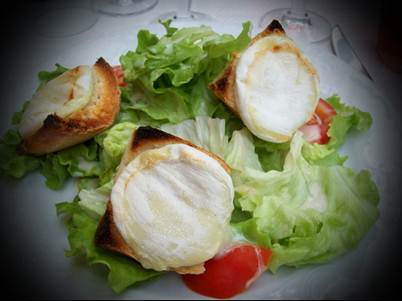 and my salad with warm goat cheese on toast at Romanella,