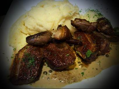 grilled duck and steak at the Commerce Café – the peppercorn sauce with the