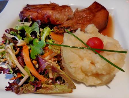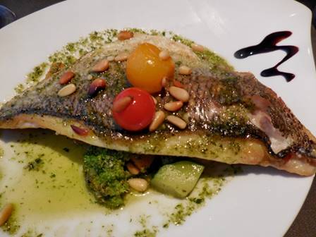 The Champ de Mars was an enormous beehive of activity yesterday afternoon. Barriers have been set up here and there throughout the park. I am guessing that they are for some holiday-related activities, although I haven’t seen anything in the news about that. Today is the Feast of the Assumption – a major holiday in France and a milestone in that brief season called Summer in Paris. After today, bit by bit, the city will resume its normal frenetic pace. Full speed will be attained by the sometime in the first week of September – also known as the rentrée. On the busy Champ, the illegal vendors of Eiffel Tower trinkets were more numerous than usual. This year, they’ve been non-aggressive; they will not even approach tourists. Tourists have to come to them. That seemed to be the case until yesterday, anyway. One of them approached me but I ignored him. The illegals make life difficult for the legitimate businesses that pay taxes, have licenses and are trying to sell competing merchandise, but do so legally. If you buy souvenirs, buy from the shops, not the illegal vendors. When we turned down the avenue de la Bourdonnais, I was pleased to see a big group of shoppers clumped around the sidewalk display for one of these legitimate souvenir shops. We worked our way back to the Champ de Mars, crossing it in just the right place so we could leave through an almost hidden exit. This takes us directly to the quieter route home, through the Square Dupleix and down the rue Violet. Sometimes there are too many busy shoppers on the rue du Commerce and the avenue de la Motte Picquet. The rue Violet is still the way this quarter used to be. At the end of our promenade, the skies were darkening. We had just enough time to buy a baguette at the bakery and wine at the Nicolas shop, then to walk the short block home. As soon as we were safely inside the apartment, the rain began. Our timing was good. I do love a good thunderstorm. I set up a chair just inside the open French doors onto the balcony, watched, and waited. The rain intensified, but there wasn’t any real thunder at all. Suddenly, a powerful gust of wind swept through the apartment. I closed the doors, and picked up all the things that had blown off the dining room table. (Nothing breakable, thank goodness.) The rain continued, but then magically stopped when it was time for our walk to dinner at O Fil Rouge on the rue Saint Charles. There the owner greeted us with warmth and good humor. Rain began falling again when we were safely seated at our table. We enjoyed the citrus, shrimp, and greens salad again, and then Tom had the special of the day: a pastilla of lamb. I thought a pastilla was a Spanish dish, but the patron says it is North African. One of the special appetizers of the day was a dish involving shellfish called couteaux. The patron was trying to describe couteaux to us, but I cheerily told him that these are called razor clams in English. He was happy to have that information, and he made a note of it so he could explain this to English-speaking diners. I hope it helps, but I think that razor clams outside of Europe are generally only found in the Pacific Northwest and New England; diners might still be in the dark until they can see and touch this odd shellfish which does look vaguely like a straight razor. My main course was the filet de dorade royale, which the chef at O Fil Rouge prepared perfectly. The chunks of veggies served beneath the fish were excellent, and I was pleased that they included tender morsels of turnips. The caramel-rich pain perdu at O Fil Rouge is unforgettable, so we shared one of those and then were on our way.