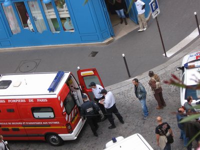 with the police and the pompiers at the intersection. I thought they were perhaps witnesses or