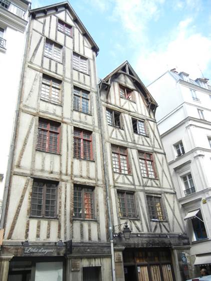 number of half-timbered buildings still in Paris, all covered up with