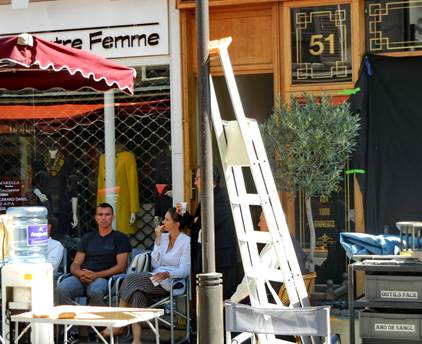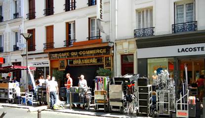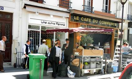 front of the Le Café du Commerce as well as the LaCoste and Une Autre Femme