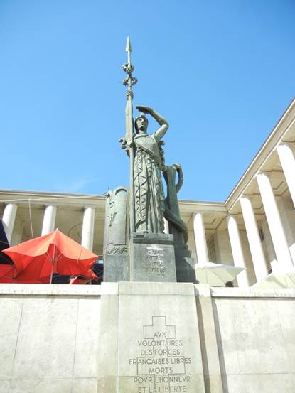 that greets us as we ascend the steps on the Seine side of the Palais de