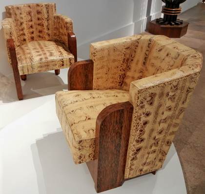 furniture, including a gorgeous set of armchairs covered in python