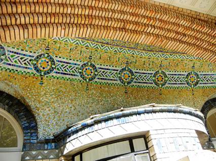 mosaic on the entry to a school near the end of the rue Rouelle.