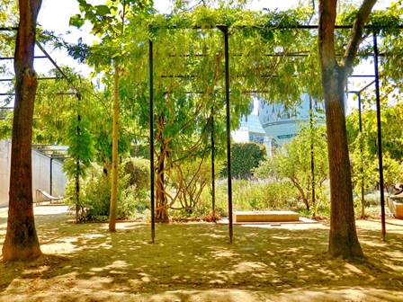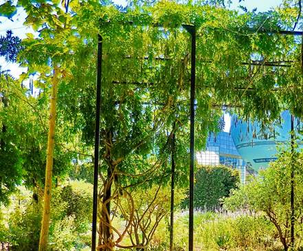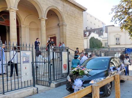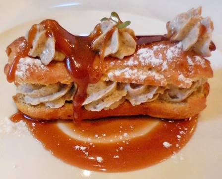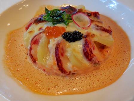 A lesser known walk along the banks of the Seine is one of our favorites. This is the left bank, from the Pont de Grenelle, where the Statue of Liberty overlooks the Seine, to the Parc André Citroën. There are no special pedestrian amenities there; instead, it is known as the Port de Javel. The RER C (commuter) train separates the port from the Quai André Citroën. The train is hidden behind a stone wall on the port side, and it is beneath the street level on the quay side. Along the stone wall is a row of very mature plane trees providing plenty of shade for flaneurs like us. Much of the walking surface is rough – mostly oddly shaped cobblestones – so sturdy shoes are a must. There is one restaurant located along the Port de Javel; it is called La Plage (the beach) because it is located right on the water’s edge. I think we ate there once, but I don’t remember the meal. I just remember that almost nobody was there, and the view of the Seine was nice. After La Plage, the facilities along the Port de Javel are utilitarian – including a depot for barges carrying sand and gravel. Big chunks of leftover limestone had been laid out along the depot’s edge – clearly meant to be ad hoc benches for weary pedestrians. Because the cobblestones are coarse, there are few bicycles along the Port de Javel – a factor that contributes enormously to the peacefulness of this place for flaneurs. We paused to take some photos of the magnificent sculptures on the Pont de Mirabeau, midway through the Port de Javel. Across from the northernmost corner of the Parc André Citroën, a small passageway is carved beneath the RER train tracks. It has been there for decades, and is obviously meant for pedestrians like us, but it is not maintained. Mother nature is taking over with an abundant supply of wildflowers, also known as weeds or native plants, depending on your point of view. The passageway is a rather nice, raw introduction and connection to the more civilized park We passed through the gates. I love that entrance to the park. It is semi-formal, lined with stately trees and granite tomb-like blocks that remind Tom of the Ostia Antica just outside of Rome. Off to the left is the series of gardens, each named for the color that dominates its beds, and straight ahead is the vast, open expanse of the park, where the great tethered balloon waits to take tourists and kids up for a view. We chose to walk through the shady gardens, until we reached a diagonal path that aimed us right toward the southeastern corner of the park. There the Buvette du Parc waits for hot and thirsty visitors. On our way there, we marveled at the numbers of families with kids enjoying the sunshine, lawns, and enormous fountain where kids are allowed to frolic, splash, and squeal. We paused for a breezy afternoon “tea” at the Buvette because we desperately needed refreshment. While enjoying “tea,” we admired a well-designed modern apartment building facing the park at number 25 rue de la Montagne de la Fage. It was built in 1997 – the year before we started summering in Paris. I looked it up. The average per square meter price for an apartment there is 8,575 euros. So a 100 square meter apartment would be 857,500 euros, or about a million US dollars. Location, location, location . . . . We sauntered home through the Esplanade Max Guedg and the rue Saint Charles. The utility work introduced lots of obstacles on the rue Saint Charles. So after we explored the Lidl discount store, we switched over to the avenue de la Felix Faure via the rue de la Convention. When we emerged in front of the church of St. John the Baptist of Grenelle, we were surprised to see a wedding party just exiting the sanctuary. The decorated car was waiting to whisk the bride and groom away. What a beautiful day for a wedding! We stopped in the Eric Kayser bakery to buy a baguette monge – the best traditional baguette in Paris, we think. I love to use it to make toast the next morning. Tom couldn’t wait. He dug into the baguette for a bite as we walked the remaining two blocks home. Dinner in the evening was at Le Pario, on the avenue Emile Zola. Thanks to chef Eduardo Jacinto, the food is terrific there. We were given samplings of delicious soup as a mis en bouche, followed by our shared starter course of a few thin slices of foie gras. Then came our main courses: a luscious lobster, caviar, and potato arrangement for me, and chunks of veal chops with a side dish of little round potatoes for Tom.