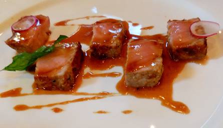 At $111, this was one of our most expensive dinners of the summer, but it was elegant, creative, and superb. Plus, the restaurant features impeccable service and truly functional air conditioning. By the time we left, the downstairs dining room was full, and people were being seated upstairs. The staff thanked us and wished us a good evening. The weather was so perfect that we simply had to sit out on the balcony for a while, taking in the smooth evening air and listening to jazz piano music. |