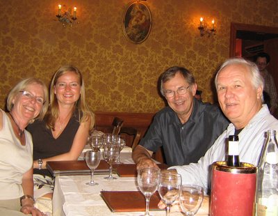 Everyone else ate dark chocolate torte in a crème anglaise sauce. Very, very rich. Straight ahead of me was a table filled by an American