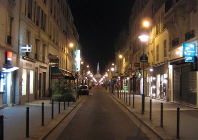 trendy rue du Commerce at night.