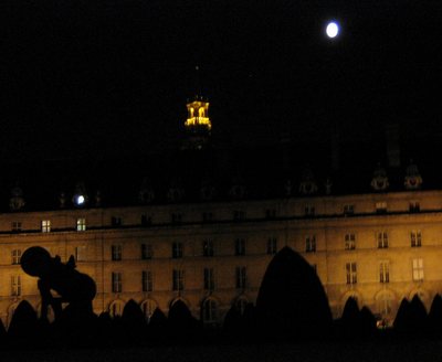 almost-full moon over Invalides.