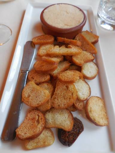 rillettes (spread) and thin, toasted crisps.