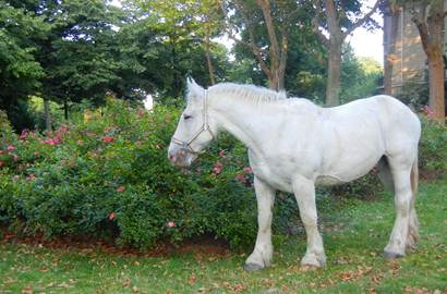 We had the day to ourselves yesterday, and we enjoyed it quietly by going out in the afternoon, after working at the computers, with our shopping bags in hand. We strolled up the calm rue du Theatre to the lovely, modernized Franprix on the rue de Lourmel to buy Italian morning espresso – a brand that we cannot find at the nearby “Diabolique” – and other goodies. We were impressed by how uncrowded and peaceful the neighborhood is, now during this perfect month of August. Back home, I speak of “the peace and quiet of hurricane season.” Here, I speak of “the peace and calm of Paris in August, without so many frenzied Parisians.” With our bags full of really good things from Franprix, we strolled home, pausing to buy a baguette from the bakery that is nearest to “our” apartment. A sign on its window announced a change in ownership. We liked the previous owners very well, but this new owner was even nicer, even more upbeat, even more welcoming and appreciative of us as potential regular customers. And the bread was better than ever. Still warm from the oven, it was just the snack we needed when we were finished putting away our purchases. In the evening, we went up for a walk toward the Champ de Mars, but we walked mostly along the elegant street that parallels its southwest side. It, too, was very quiet and calm. While this street is mostly expensive residential property, there are also a few embassies and elegant government offices discreetly housed here and there in the grand Haussmannian buildings. I was charmed this time, in particular, by a carving of cherubs with their legs dangling over the front entrance to one building, which turned out to be the embassy for the Czech Republic. The street ends near the Eiffel Tower, where the Champ de Mars widens, seemingly to accommodate this “Grande Dame.” So at that point, we entered the park. We were surprised to see a horse grazing by some rose bushes in a green area that was enclosed by a very low fence. The fence was not a real obstacle to this horse, but a symbolic one that seemed to work perfectly well to contain him. The horse was not interested in going anywhere; he simply wanted to chew on the grass by the pretty pink rosebushes. The human operators of horse-and-buggy tourist rides were resting not far away, and the buggies were covered by tarps. Done for the day. About to go home, to greener pastures. We, too, began to think about dinner. After walking up to a break in the trees where we could admire the Tower, we decided to stroll back down the avenue de Suffren, thinking we’d end up around 8:30 or so in front of La Gitane, one of our favorite Parisian restaurants, located on the avenue de la Motte-Picquet. On the avenue de Suffren, we passed a homeless man in thick, long dreadlocks. Tom wanted to give him something, but we had no change. So he gave him a 5-euro note. I think the man was stunned by this. That reminds me – a day or two before, when we were walking up the busy rue du Commerce, we passed a woman sitting on the sidewalk. But she did not ask for anything. Still, we realized when we had just passed her, that she is a mendicant we recognize from the neighborhood – a woman we’ve seen here for years. She has aged tremendously. When we first saw her 14 years ago, she was more youthful looking, and slimmer. But she was clearly crazy. She lived in some fantasy world. I think she is a schizophrenic. In the years following, she’d be different from time to time. Sometimes she was taking her medication, and she’d be quite subdued. Sometimes she’d be off her medication, and she seemed to float around in a dreamlike state, babbling happily and nonsensically. The past few years, she’s been on her medication, and we haven’t seen her as often. But she was there the other day, sitting on the busy sidewalk, and Tom asked if I wanted to give her something. I said yes, I do. He gave me a 2-euro coin, which I took back and handed to the woman. She smiled and said “merci, madame.” I just smiled, closed my eyes briefly, and bowed my head slightly. I admire her courage. We went on our way. She dresses like a child of the 60s. She is about my age, I suspect, but the medication or something makes her look and seem older. We consider her to be one of our neighbors. Just before we arrived at La Gitane last night, my smartphone rang. I handed it over to Tom, because I thought it was his son Dan calling. But the caller was Elisabeth, our friend in the 6th. She wanted some suggestions of restaurants in our area where they could take friends who’d soon be arriving from New York. Ah, New York, New York. The publisher there is still ahead of us in this phase of the production of the 8th edition of The Norton Sampler, and so we spend days in front of the computers, and it is only the evening adventures that I have to tell you about. As Tom was finishing his conversation with Elisabeth, I greeted the patronne, Corinne, and asked if she had a table for two available. A l’intérieur, she replied. I said, “D’accord, merci.” Although it was a lovely evening, we do not want to sit outside because that’s where the smokers are. So we were seated at one of the last remaining tables, in the center of the dining room. The restaurant was very busy. Near us was one of those extraordinarily well-behaved and well-groomed little Parisian dogs, dutifully sitting under his master’s chair, until finally he just had to sit out a bit farther, where he could see what was happening. Miraculously, nobody stepped on him. La Gitane is one of the few restaurants that includes a little ceramic dish of butter in the bread basket. We were grateful for this, because we were hungry. We shared a starter course, the carpaccio of artichoke hearts – a perfect summery dish that I have come to adore. We both ordered the fish special of the day, the dorade filet, which arrived on a delicious pile of ratatouille topped by a serving of 