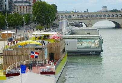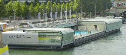 cobblestones. Piscine Josephine Baker – a floating municipal swimming pool. Lovers’ padlock on the Passerelle Simone de
