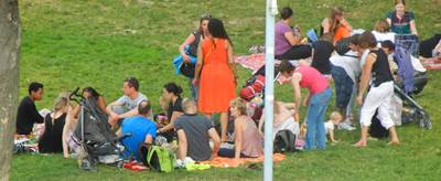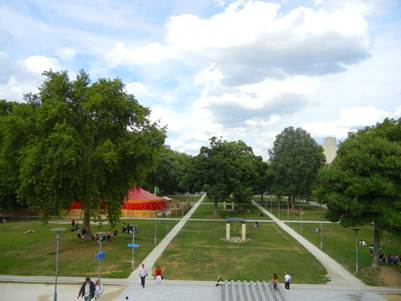 Beauvoir. A group of families enjoying a Saturday in the park. Two clubs on the right bank at Bercy: the Blues Café, and the Emirates. |