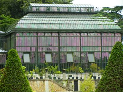 of the greenhouses in the Jardin des Plantes. Below,