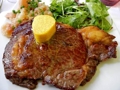 steak with turmeric butter, roseval potatoes, and