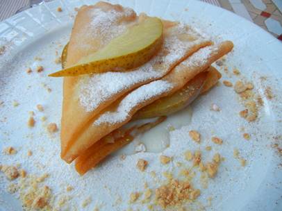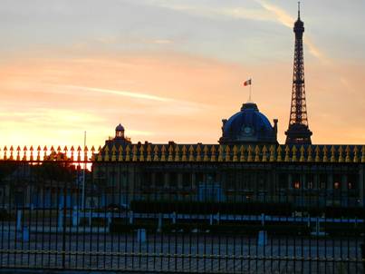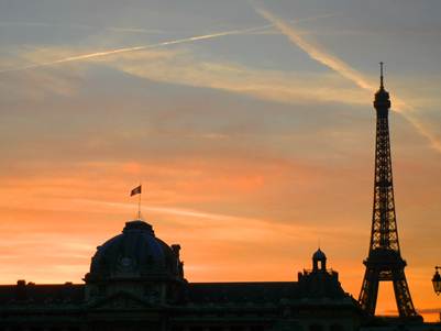 ] This emblem is also found on Louis XII’s château of Blois (see photos of it there at http://his.nicolas.free.fr/Histoire/Monuments/Chateaux/Blois/AileLouisXIIEmbleme.html ). Although Louis XII used the emblem, he disbanded the Order of the Porcupine in the 1490s. When the order existed, Louis de France declared himself as the grand master of it; in addition to him, there were 25 knights in the order. Although Louis XII ended the Order of the Porcupine, it seems to pop up again now and then. Now, for example, there seems to be some sort of game called the Order of the Porcupine, that has something of a cult following the way Dungeons and Dragons did. The façade on number 82 boulevard de la Tour Maubourg is probably from some earlier (early 20th Century?) revival of the Order. The protective glass door seems not to have been opened or cleaned in a long time. Litter collects between it and the wooden doors. The small windows are covered in newspaper on the inside. The last real knights of the Order of the Porcupine who existed in the mid-1400s included a man named Lorens de Lignières. I have a friend in Sanibel with that last name – interesting! I think the name belonged to her ex-husband. I’ll have to ask her about it sometime. According to a Flickr photographer named RUAMPS, this façade at 82 boulevard de la Tour Maubourg was a boutique called “Au Louis XII.” I think it is strange for a boutique to have such small windows, with iron grills, that you cannot really see through. But maybe . . . . We continued walking down the boulevard until we were stopped in our tracks once again, this time by the beautiful décor of a Moroccan restaurant. I took a couple photos, and then asked a man working there if I could please have a card (carte de maison). He happily gave me two. On the agenda for the evening was a walk-by for a few of the restaurants mentioned in the Bonjour Paris article about places open in August. The first, the Arpege, on the corner of the rue de Varenne and the rue de Bourgogne, was outrageously expensive, and you couldn’t even see what it was like inside, even though the menu was posted outside. If we are going to spend that much money, we are going to Tour d’Argent or someplace else that we’ve heard about. I’ve never known anyone who dined at Arpege, and I don’t trust reviews in publications that rely on advertising. We enjoyed the rue de Bourgogne and its charming shop windows. Then we found ourselves at the rue Saint Dominique, the street that is home to the three restaurants owned by the Constant family. But the address for their restaurants was not near; we had to walk for some distance before we arrived there. We arrived in time (7PM) to see the staff open the doors for Les Cocottes and Café Constant – the two Constant establishments where one does not need a reservation. People had been in line, waiting for these places to open. The real restaurant, Violon d’Ingres (135 rue Saint Dominique) would not open until 8PM, and reservations would be required. We went on, because we were not yet ready for dinner, and because I wasn’t so sure about Les Cocottes and Café Constant. The clientele so far looked like people who were mainly looking for inexpensive dinners. They didn’t look savvy. It took a while, but we finally circled back to the beautiful Moroccan place, Dat Lyakout, at 94 boulevard de la Tour Maubourg. There I ate the best tagine I’ve ever had – a healthy, piping hot, and well-seasoned variety of vegetables with perfectly roasted chicken -- and Tom had very good grilled lambchops and fries. Tom finished with a fascinating millefeiulle of pear dessert. The delight of the evening was the beautiful sunset sky, and the views of the Eiffel Tower and École Militaire that went with it, as we walked home after dinner. |