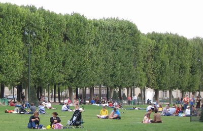 Esplanade des Invalides, where supposedly ball games are banned. But there is a perpetual soccer game going