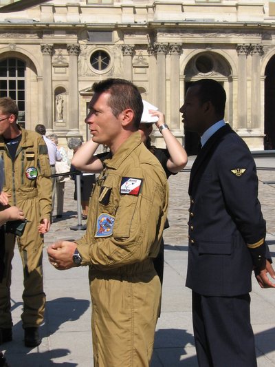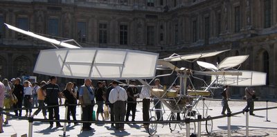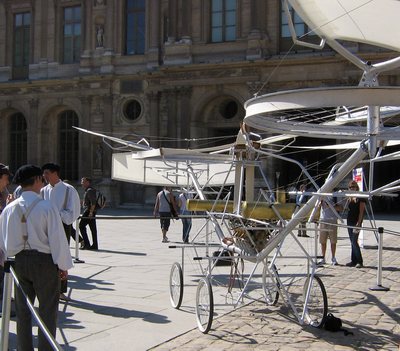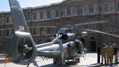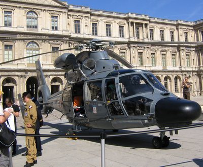 military style helicopter hovering over the Louvre! It is on display through the weekend,