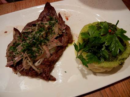 excellent skirt steak and potatoes, which were topped with a pesto and