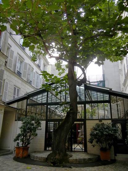 paulownia tree in an old courtyard on the rue des Saints-Peres.